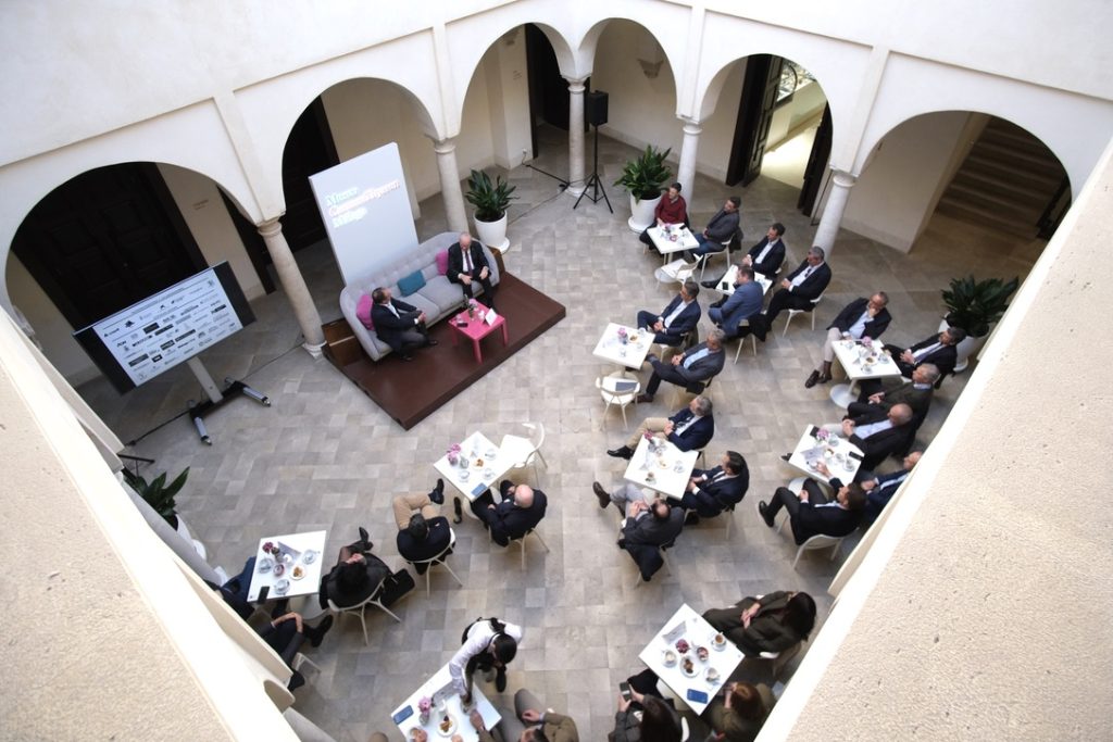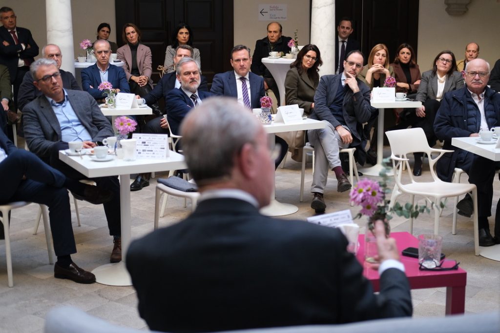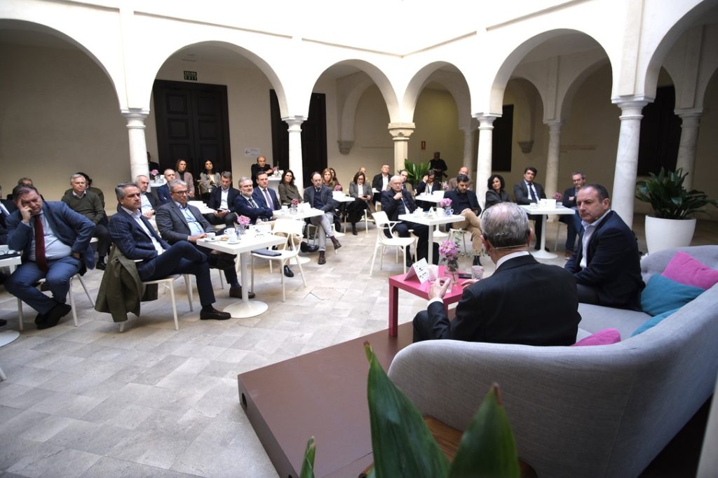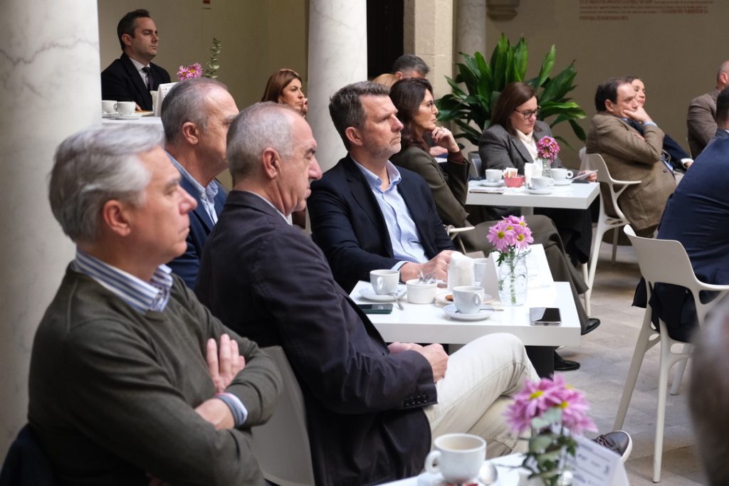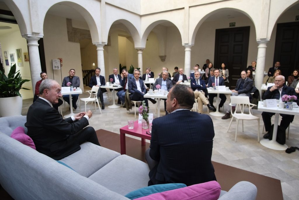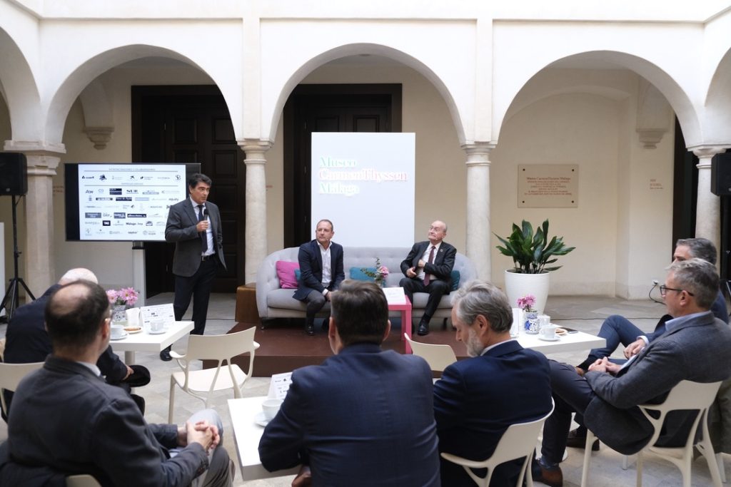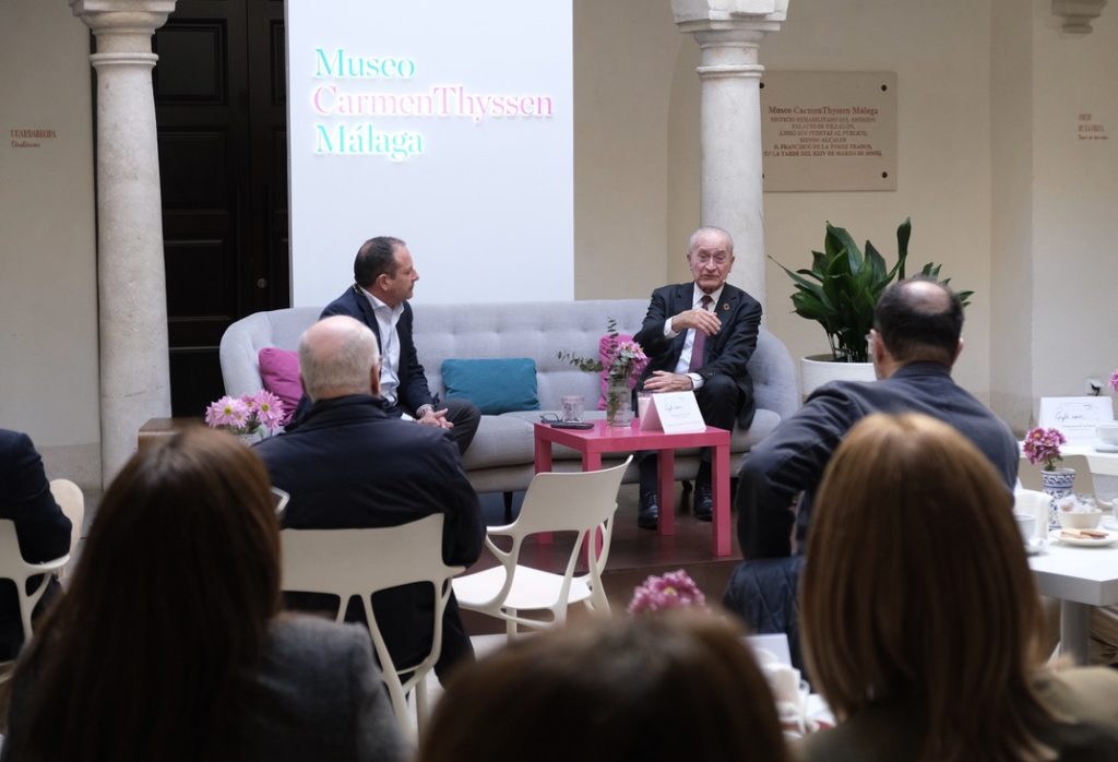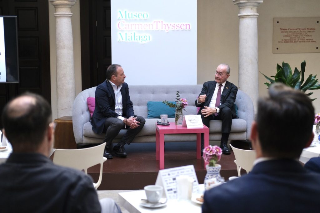 «Café con Francisco de la Torre» abrió el año de actividades para las empresas Thyssen. En el bello marco del Patio de Columnas del Museo y con un formato de entrevista chester, popularizado en la televisión, el alcalde de Málaga, Francisco de la Torre, fue entrevistado por el periodista Manolo Catillo ante un aforo de directivos, representantes de las 40 empresas y 10 corporaciones, que siguió atentamente la conversación y participó con sus preguntas. El alcalde hizo un interesante comunicación sobre su conocimiento y trayectoria en los niveles local, provincial, regional y estatal, en la que destacó especialmente su confianza en las posibilidades de la ciudad y la provincia de Málaga.